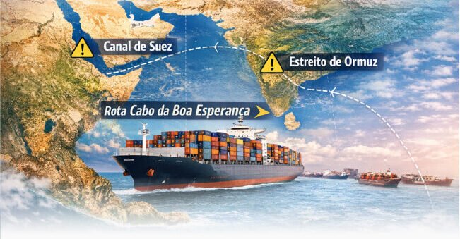 O impacto para o comércio exterior brasileiro pode ser significativo. O aumento no tempo de trânsito — estimado entre 10 e 20 dias adicionais — combinado à aplicação de sobretaxas de risco de guerra (War Risk Surcharge), pressiona custos, margens e compromissos contratuais.