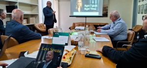 A reunião teve início com a apresentação de Levi Souza, CEO e fundador da QPartnerHR, sobre os avanços do projeto da Universidade Corporativa SINDICOMIS NACIONAL (UCSN). Ele detalhou o lançamento do Programa Executivo de Vendas B2B – Comércio Exterior & Logística, voltado tanto para profissionais que buscam crescimento ou transição para a área comercial quanto para jovens talentos interessados em uma carreira de vendas B2B no setor de comércio exterior.